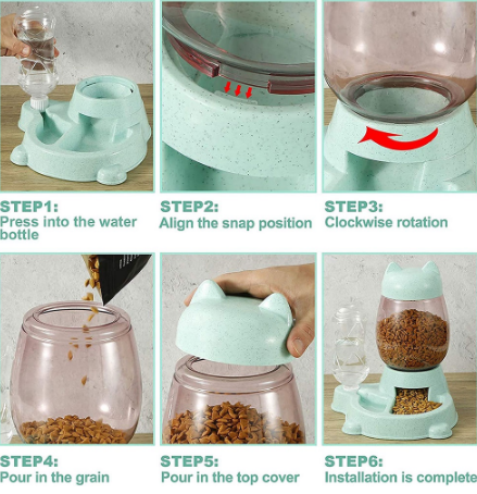 2. El diseño dos en uno combina el recipiente de comida y agua junto con el sistema de recarga automático, asegura sin esfuerzo suficiente comida o bebida para su mascota cuando está fuera de casa para vacaciones.